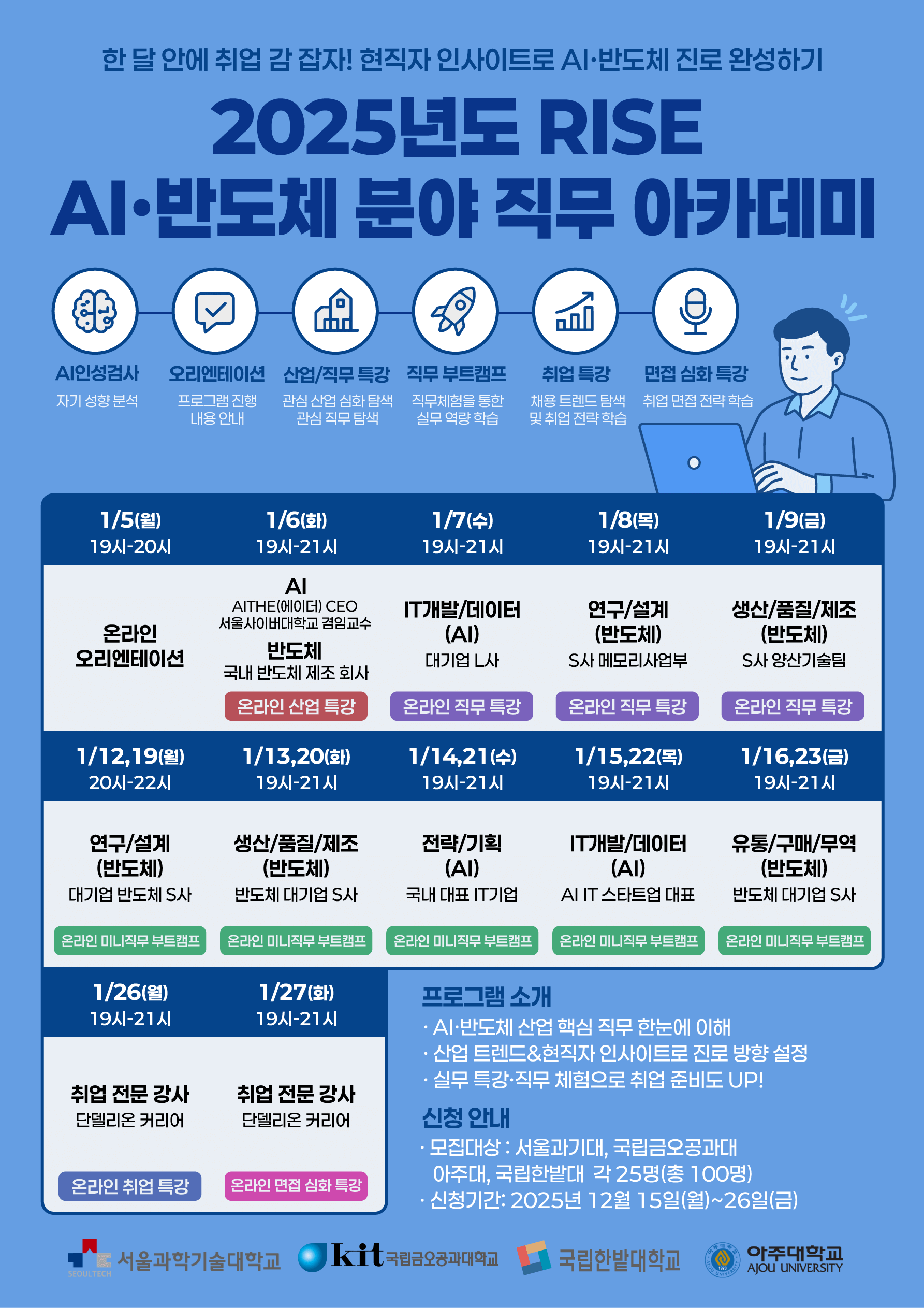 [비교과] [RISE] 'AI·반도체 분야 직무 아카데미 교육' 아주대 재학생 참가자 모집(무료)(~12.26.(금)까지)
