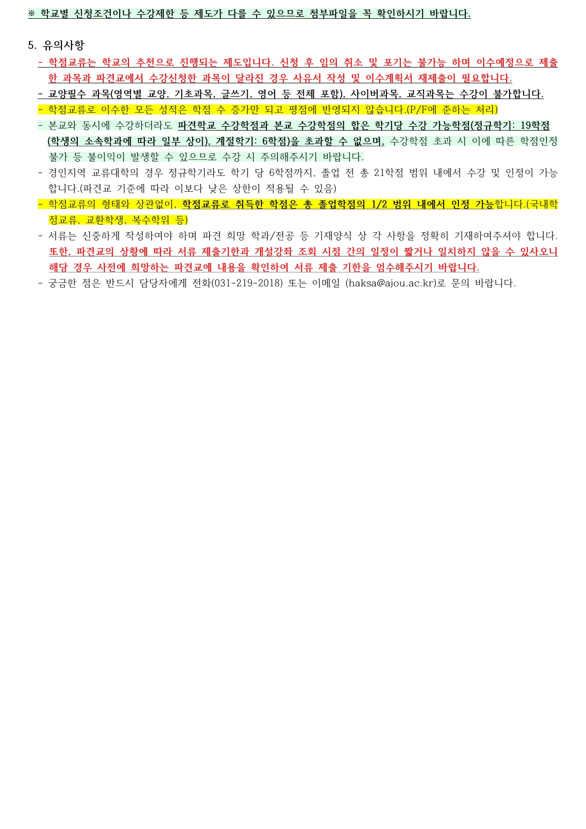 * 각 학교별로 요청하는 신청자 양식이 있으니 확인하시어 이수계획서와 함께 학과사무실로 제출바랍니다.