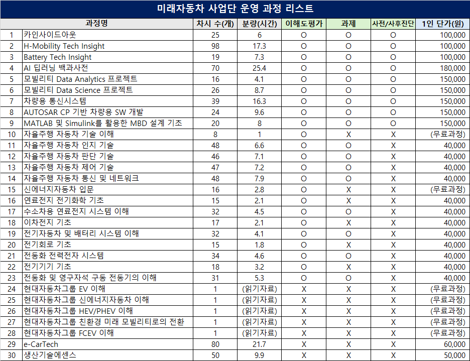 다. 교육대상: 첨단분야 혁신융합대학사업 미래자동차 컨소시엄 참여대학학부 재학생