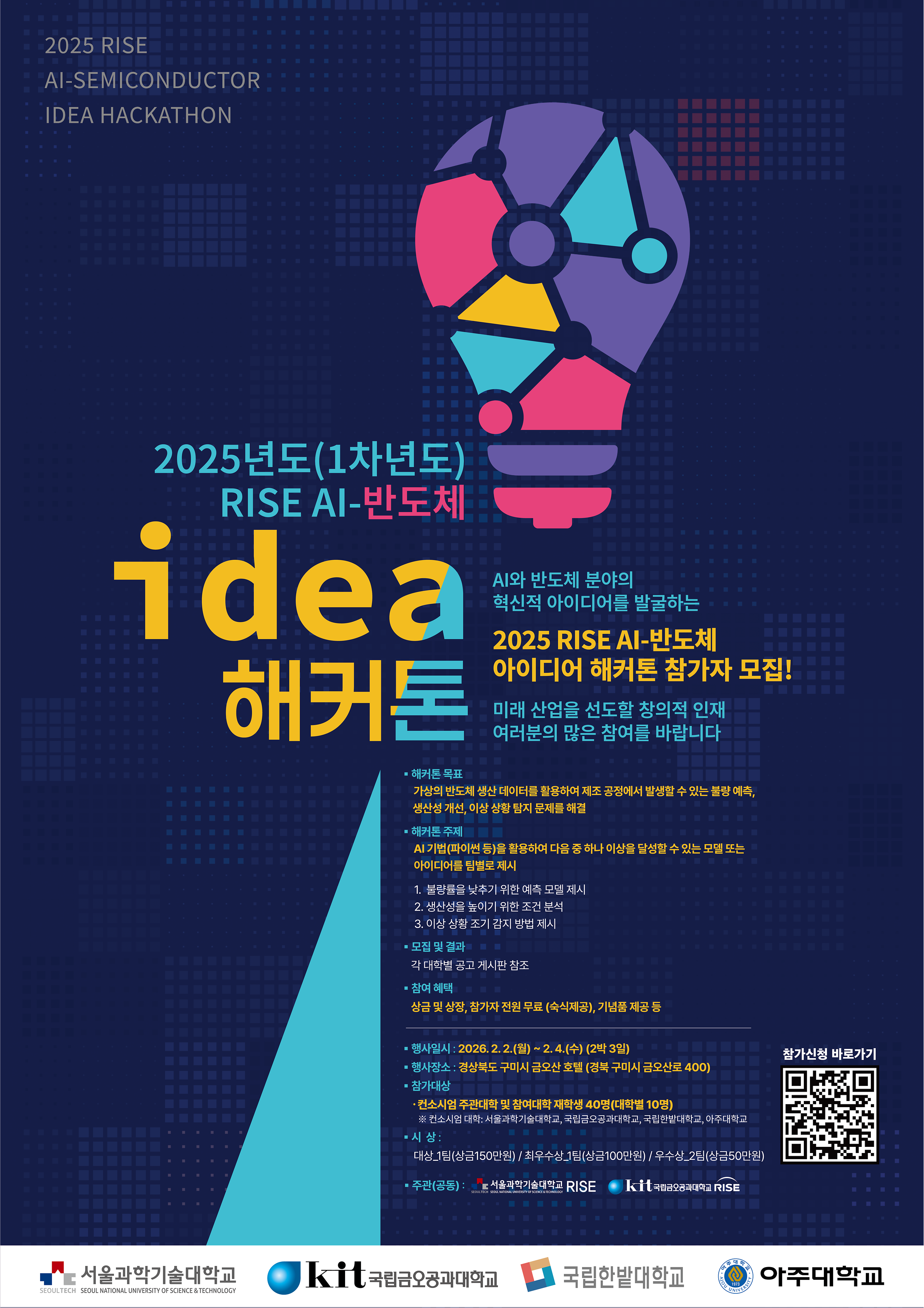 [비교과] [RISE] 2025 RISE AI-반도체 아이디어 해커톤 프로그램 교육생 모집(무료) (~1/26(월)까지)