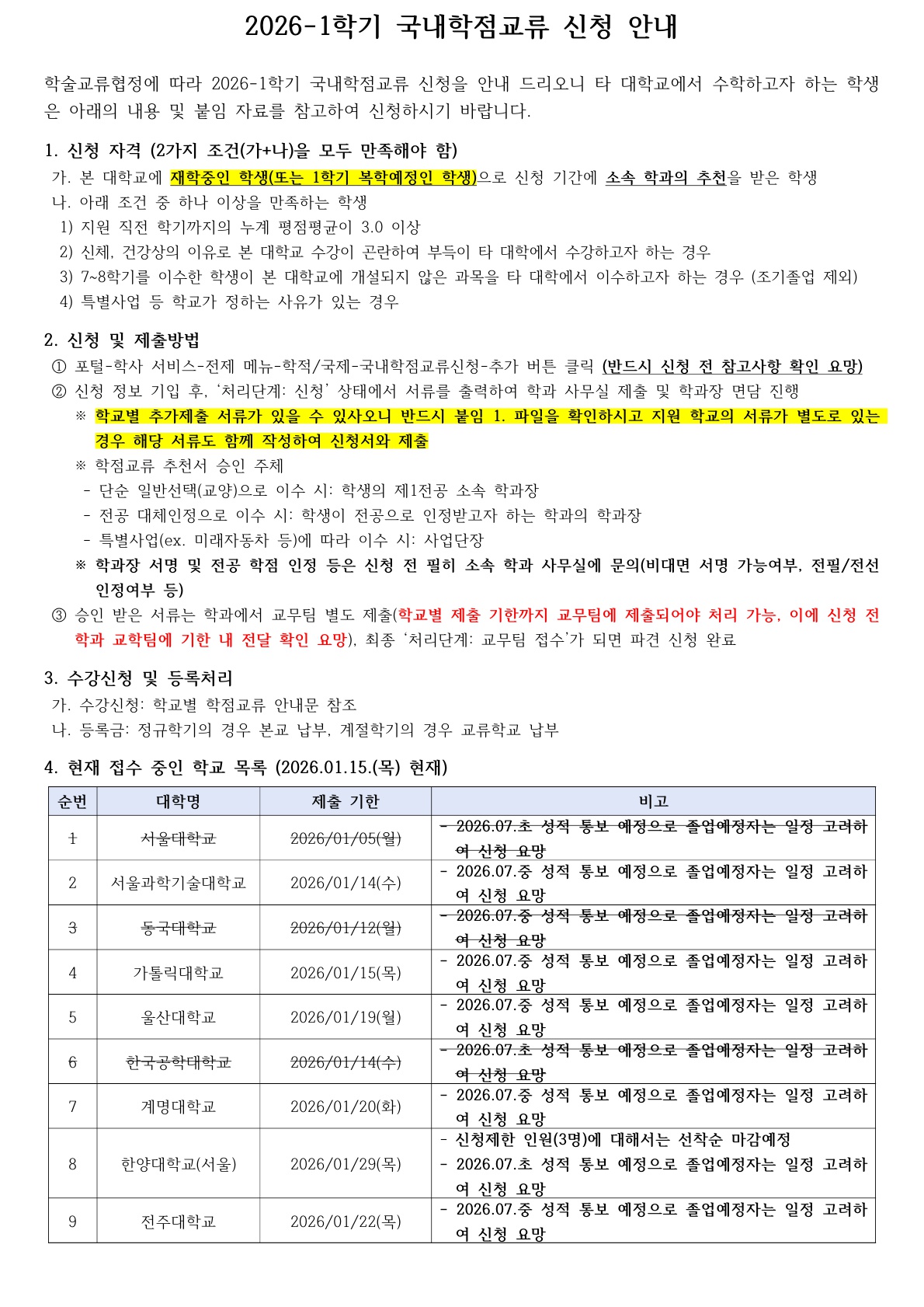 [학사] [학부/학사과정] (26.01.15.)(수정) 2026-1학기 국내대학 학점교류 신청 안내