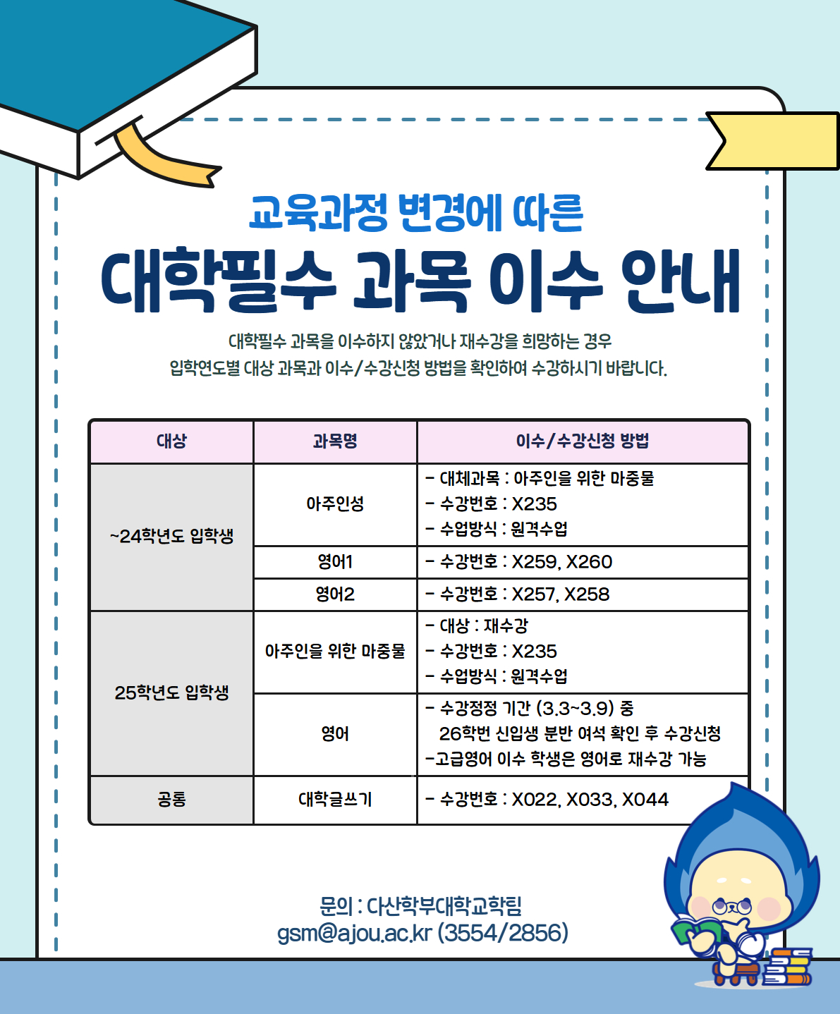 [학사] [다산학부대학] 교육과정 변경에 따른 대학필수 교과목 이수 안내