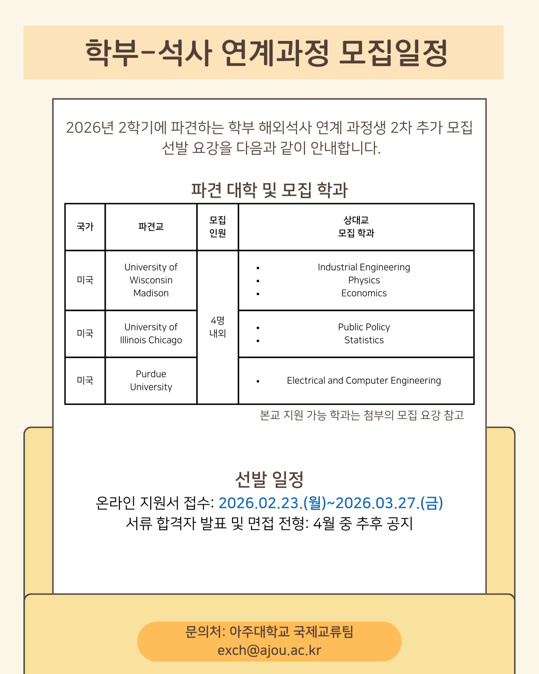 [학사] [재공지][국제교류팀] 2026-2학기 파견 학·석사 연계과정 추가모집 공고